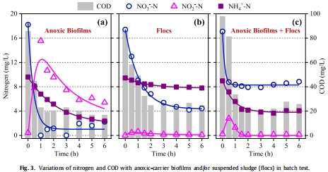 批次測試:對比生物膜載體、懸浮污泥及其混合體系的氮轉化路徑(圖3)。