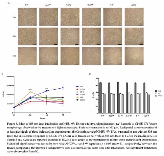 本研究通過808 nm光生物調節(PBM)處理人頭頸鱗狀細胞癌(HNSCC)細胞系(OHSU-974 FAcorr),發現: