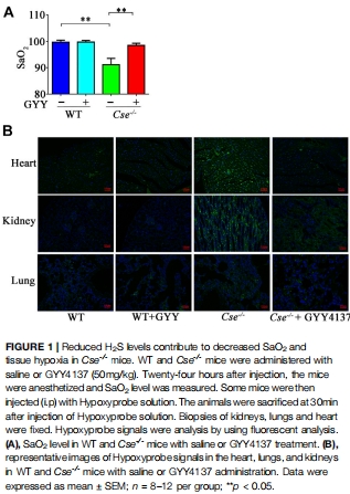 SaO?顯著降低:Cse?/?小鼠SaO?降至90.48%(野生型WT:96-100%),伴心腎組織輕度缺氧(圖1A-B)。