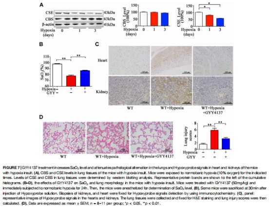 缺氧24小時:肺H?S生成速率↓50%(圖7A),為"缺氧→CSE↓→H?S↓→SaO?↓"鏈條提供動態(tài)證據(jù)。