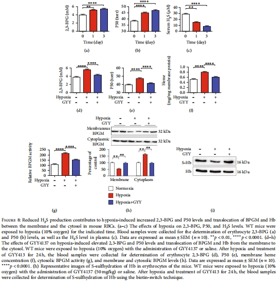 缺氧適應性:缺氧降低循環H?S水平,增加2,3-BPG,而GYY4137可逆轉此效應(圖8)。