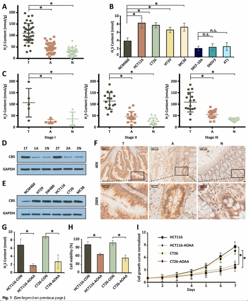 證實CBS抑制劑(AOAA)降低H?S后抑制CRC生長(圖1G-I),反向驗證H?S的促癌作用;