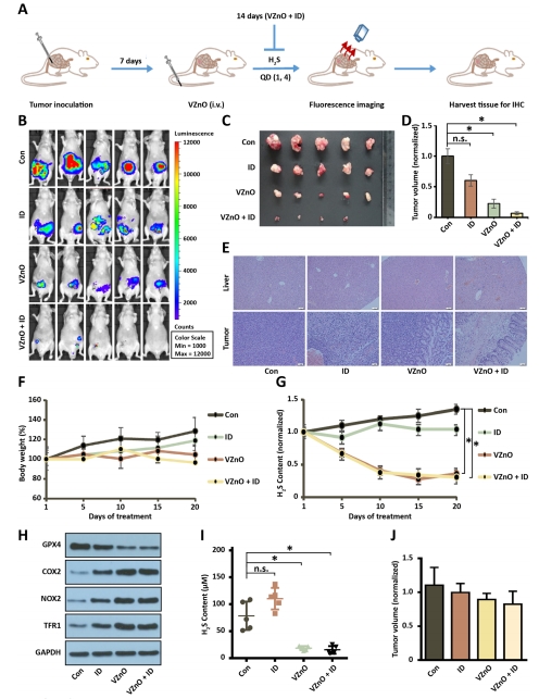 動態監測VZnO治療后腫瘤H?S持續下降(圖5G),直接關聯療效與H?S清除效率。