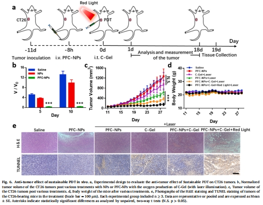"C-Gel + PFC-NPs + 雙光"組腫瘤完全消退率30%(圖6c);