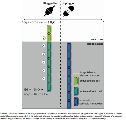 “氧氣起搏器”模型:提出新模型解釋同步分裂機(jī)制——電纜細(xì)菌僅在接觸氧氣時啟動長距離電子傳輸,從而觸發(fā)全絲同步生長與分裂(圖7)。