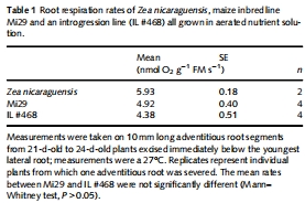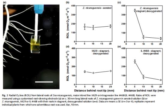 除了不定根外,側根在 Zea nicaraguensis 中形成徑向氧損失的屏障,在玉米中形成染色體段滲入線