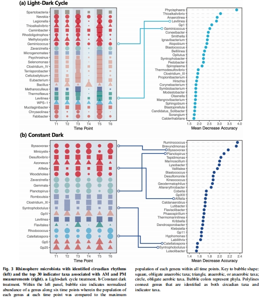 解析調(diào)控機制:區(qū)分光照環(huán)境變化(外源驅(qū)動)與微生物內(nèi)源生物鐘對根際微生物節(jié)律的影響。