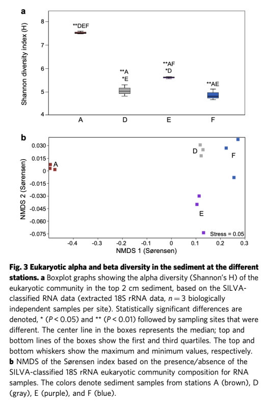 ? 數(shù)據(jù):富氧站(A)線蟲(chóng)相對(duì)豐度7.64±0.55%,缺氧站(E)為5.43±2.16%;Halomonhystera在E站占比73.9±9.3%