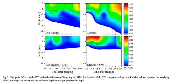 ? 意義:疏浚(D組)使SWI溶解氧(DO↑至4.59-8.89 mg/L)和氧滲透深度(OPD↑)顯著改善;SPM輸入(NDS/DS組)通過OM降解耗氧,使DO降至0.61-5.38 mg/L。