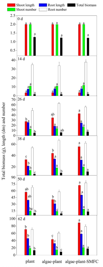 4. 分析藻分解兩階段(緩慢期14-38天 vs 快速期38-62天)中SMFC與植物的互作機(jī)制