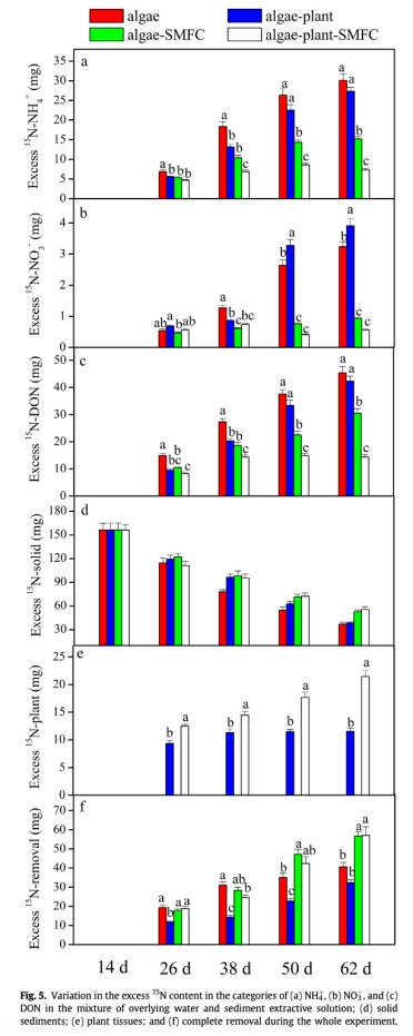 ? 意義:揭示SMFC促進(jìn)藻源氮向植物遷移(根區(qū)1?N吸收率提升),并通過(guò)厭氧氨氧化菌(如Candidatus Brocadia)強(qiáng)化脫氮