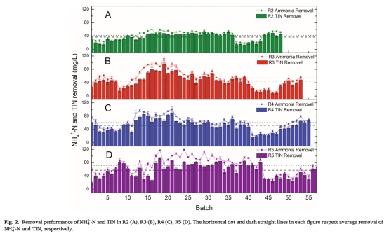 ? 來源:圖2(NH??/TIN去除)、圖3(COD去除)、圖4(出水pH)