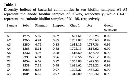 3. 高通量測(cè)序分析陽(yáng)極/陰極菌群結(jié)構(gòu)(圖5,表1)