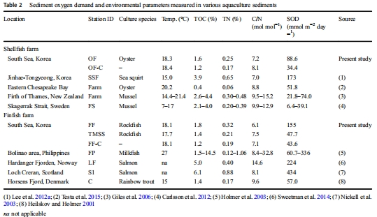 1.量化水產養殖(魚類/牡蠣)對沉積物 耗氧量(SOD) 和 營養鹽通量(BNF) 的影響。