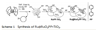 步驟3:可控氧化形成核殼結構Ru@RuO?PP-TiO?,再錨定RuP光捕獲劑(Scheme 1)。