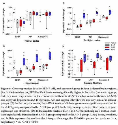 基因表達(dá)(BDNF、AIF、caspase-3 mRNA,圖8)。