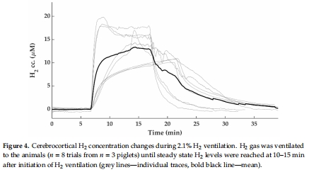 數(shù)據(jù):使用丹麥Unisense H?微電極實時監(jiān)測,H?吸入后10–15分鐘腦皮質(zhì)H?濃度達(dá)穩(wěn)態(tài)(13.1±3.4 μM)。