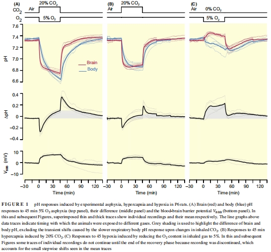 研究通過建立嚙齒動物(大鼠和豚鼠)新生兒窒息模型,模擬出生窒息(缺氧+高碳酸血癥),探究大腦pH和氧分壓(PO?)的動態變化及內源性保護機制。核心發現: