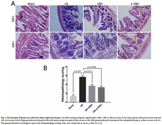 1.HRS通過 抑制ERS-CHOP-caspase-3凋亡通路,減少IIRI導(dǎo)致的腸上皮細胞損傷。
