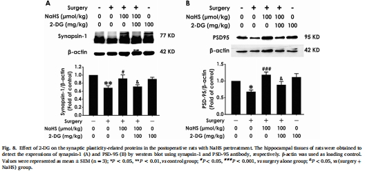 2-DG阻斷NaHS的沃伯格效應激活(圖6)、突觸蛋白表達(圖8)及認知改善(圖7)。