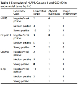 免疫組化(IHC)檢測人子宮內膜癌組織中NLRP3、caspase-1、GSDMD表達(圖2)。