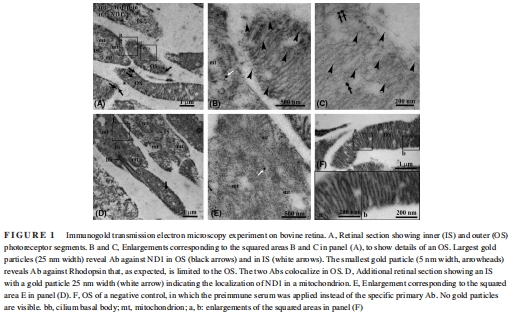 視網膜線粒體或視桿外段盤中五種氧化還原復合物的差異表達與它們的不同功能一致
