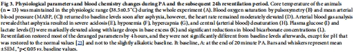 PA期間:PaO?從65±4降至23±1 mmHg(缺氧),PaCO?從37±3升至160±6 mmHg(高碳酸血癥),乳酸從1.6±0.3升至10.3±0.7 mmol/L(代謝性酸中毒),動脈血pH(pHa)從7.53降至6.79。