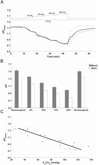 量化呼吸性酸中毒對pHbrain的貢獻(PA期間約60% pH下降歸因于高碳酸血癥);