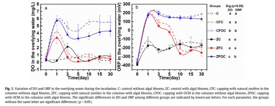 2 藻華調控:OCM封蓋抵消藻類分解的氧耗,使藻系統DO維持4 mg/L,顯著降低藻源磷釋放(圖2)