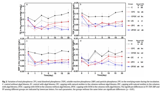 ? OCM封蓋使藻系統TDP/SRP顯著低于對照(p<0.05),抑制藻源磷釋放