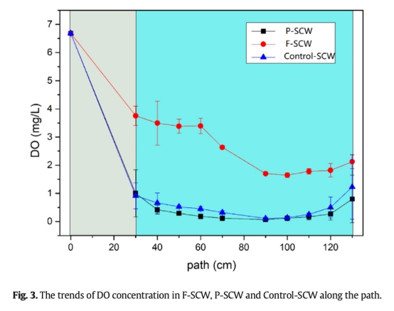 ? 微纖維組(F-SCW)30cm處DO達3.39mg/L(對照組0.92mg/L)