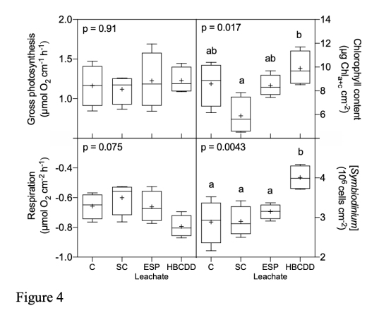 4 生理響應(圖4):珊瑚蟲收縮作為敏感脅迫指標,暗示浸出液中除HBCDD外存在其他有害成分