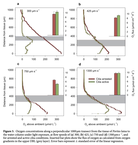 ? 數(shù)據(jù):纖毛活動(dòng)未改變跨DBL氧通量(光照:5–10 μmol cm?2d?1;黑暗:-3.7~-7.3 μmol cm?2d?1)。