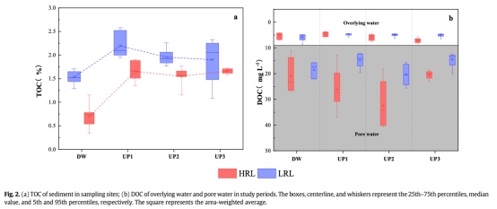 ? 數據:低水位期沉積物TOC顯著增加(下游DW增幅120%),DOC濃度在孔隙水中高于上覆水。