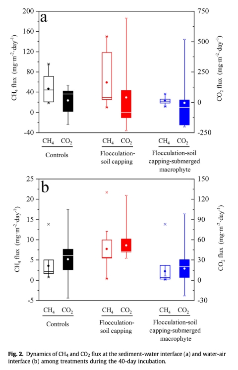研究提出一種以沉水植物為核心的"生物泵"系統,結合絮凝(PAC)和封蓋技術,用于控制藻華并減少溫室氣體排放。關鍵發現包括: