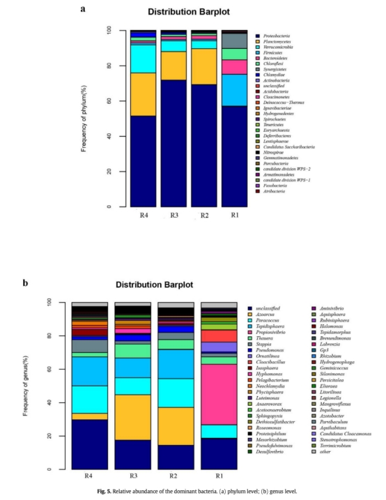 ? 數(shù)據(jù):napA、nirK、nosZ在R2的相對表達(dá)量最高(較R1提升1.8-2.3倍)。