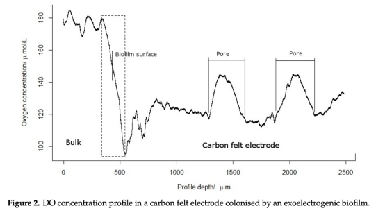 闡明在暴露于空氣的碳氈電極上發展的電生成生物膜的結構和性能,特別是氧氣在其中的作用機制。