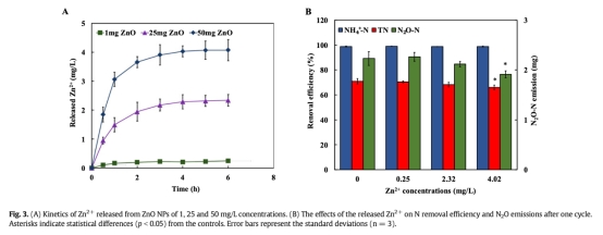 4. Zn2+釋放數(shù)據:ZnO NPs釋放的Zn2+濃度及其對氮轉化和N2O的影響(來自圖3)。研究意義:證明Zn2+是ZnO NPs毒性的主要來源,直接導致反硝化抑制和N2O減排。