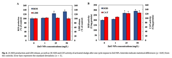 3. ZnO NPs釋放的Zn2+是毒性的主要來源,誘導ROS生成,但系統(tǒng)通過增強SOD和CAT活性以及增加TB-EPS中PN分泌來自我調節(jié),減輕納米毒性。