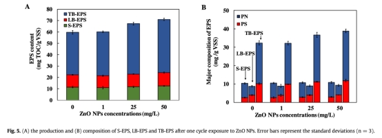 4. 系統(tǒng)具有潛在自我調節(jié)機制,包括抗氧化酶活性和EPS變化,以應對ZnO NPs脅迫。