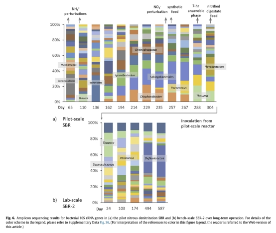 4. 微生物群落結(jié)構(gòu)會隨運行條件(如厭氧相時長)發(fā)生顯著變化。長期在短厭氧條件下運行,富集了以Defluviicoccus cluster IV相關(guān)的糖原積累菌(GAOs)為優(yōu)勢的群落,該菌群表現(xiàn)出高效的碳儲存和將亞硝酸鹽還原為N2O的能力,是工藝穩(wěn)定運行的關(guān)鍵。
