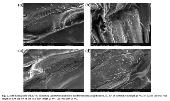 b. 使用掃描電子顯微鏡(SEM)觀察KT2440在根部的定殖情況。