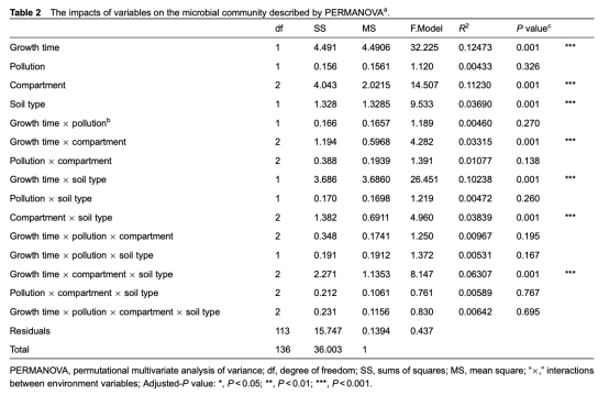 ? 研究意義:定量證明生長時間(R2=0.124, P<0.001)和根區 compartment(R2=0.112, P<0.001)是主要影響因素,而林丹污染單獨效應不顯著(P=0.326)