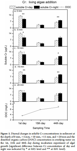 藍藻水華的影響:藍藻水華通過提供有機質間接影響夏季鉻的遷移,并會改變沉積物中鉻遷移的晝夜動態模式。