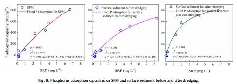 來(lái)源:SPM和沉積物的磷吸附等溫線(xiàn)見(jiàn)圖6;吸附參數(shù)見(jiàn)表S4。