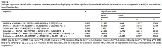 數(shù)據(jù)整合與建模:通過相關(guān)分析、多元回歸(表1、表2)建立可降解化合物與致臭物的定量關(guān)系,評(píng)估擴(kuò)散風(fēng)險(xiǎn)。