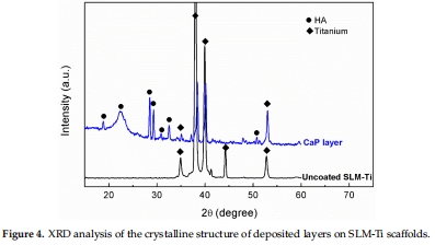 數據來源:圖3 的SEM照片顯示了頂部和底部表面的涂層形貌差異;圖4 的XRD圖譜確認了沉積層為羥基磷灰石。