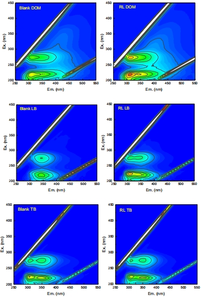 數據:RL處理后,DOM中酪氨酸類似物熒光強度增加1.3倍(4655 vs. 3699),LB-EPS中檢測到酪氨酸類似物(FI=4603),而TB-EPS中熒光強度降低。