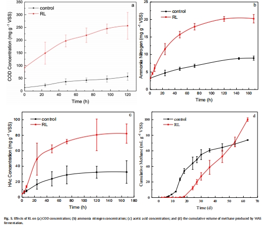通過動力學模型分析RL對水解和酸生成過程的促進作用,為優化WAS處理提供理論依據。