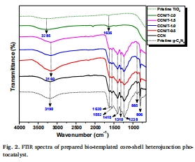 數據:FTIR光譜顯示CCN特征峰(806 cm?1和1200-1650 cm?1)隨TiO2濃度增加而減弱,CCN/T-2.0中CCN峰消失。